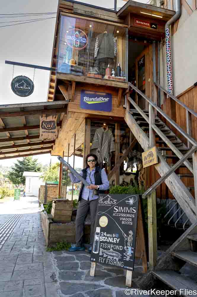 Well, walking the streets during our down time in Puerto Varas, we happened by Huellas. Turned out they sold fly rods! The owner, Mariano Peppi Arancibia, helped us select a faster action TFO Axiom II-X 6 weight rod that Dancingtrout ended up using. We had talked about purchasing a faster action rod for her to use instead of the Winston BiiX we normally fish.